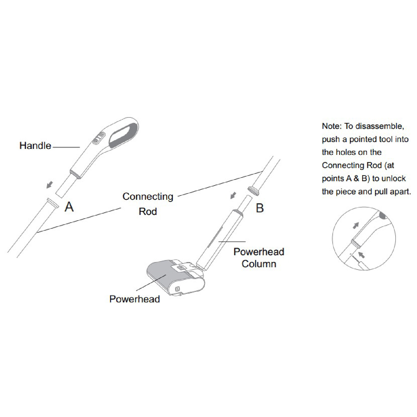 • Insert the other end of the Connecting Rod into the Powerhead Column, at point “B”