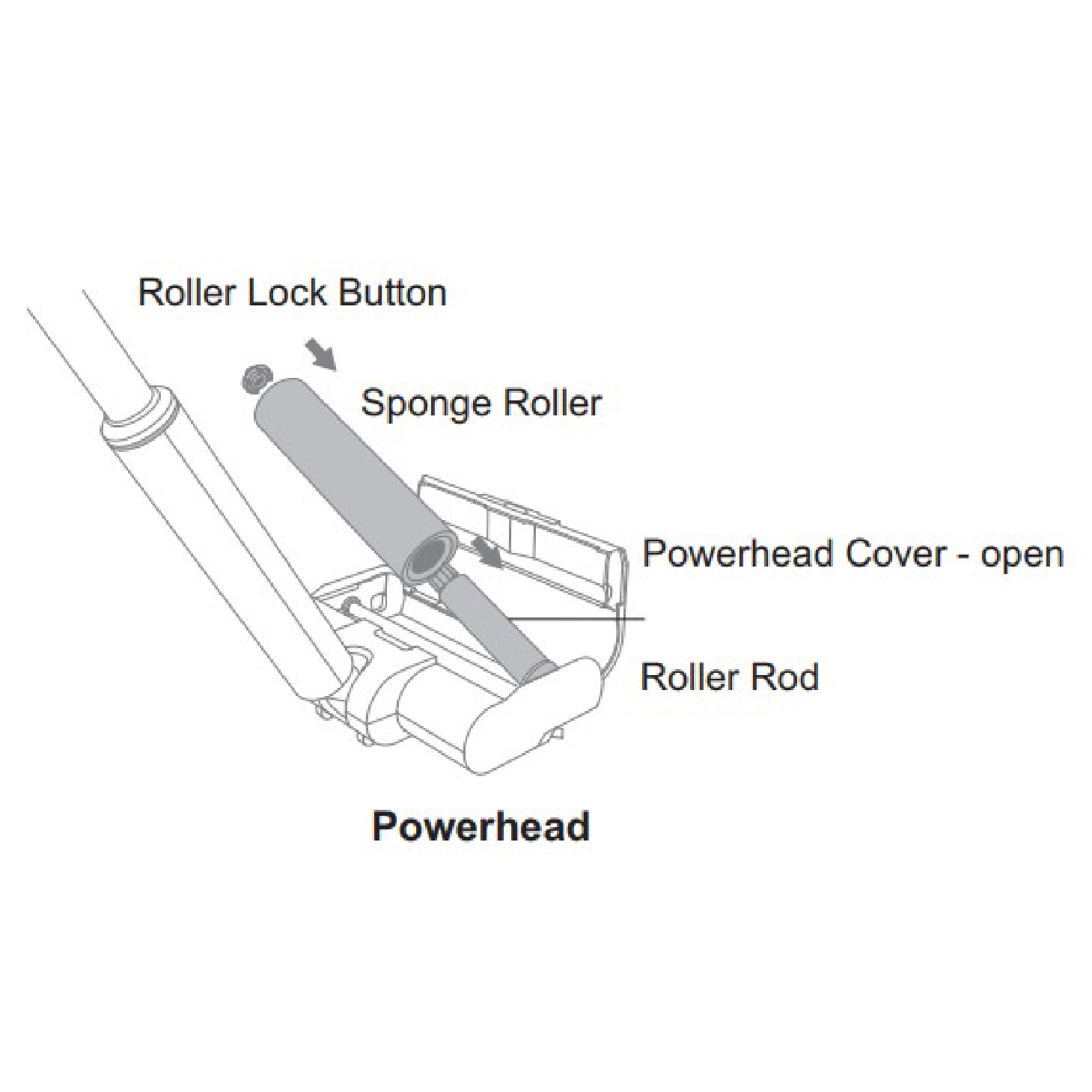 • Roller: Open the Powerhead Cover, press the orange Roller Lock Button, and lift out the Roller.